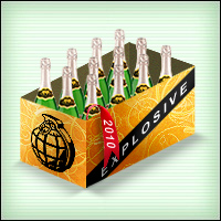 Подарочный ящик[прим. 1] с шампанским. В одном ящике, как известно, 12 бутылок. Чтобы не набивать склад бутылками, они удобно упакованы — бутылки из ящика можно доставать по одной.